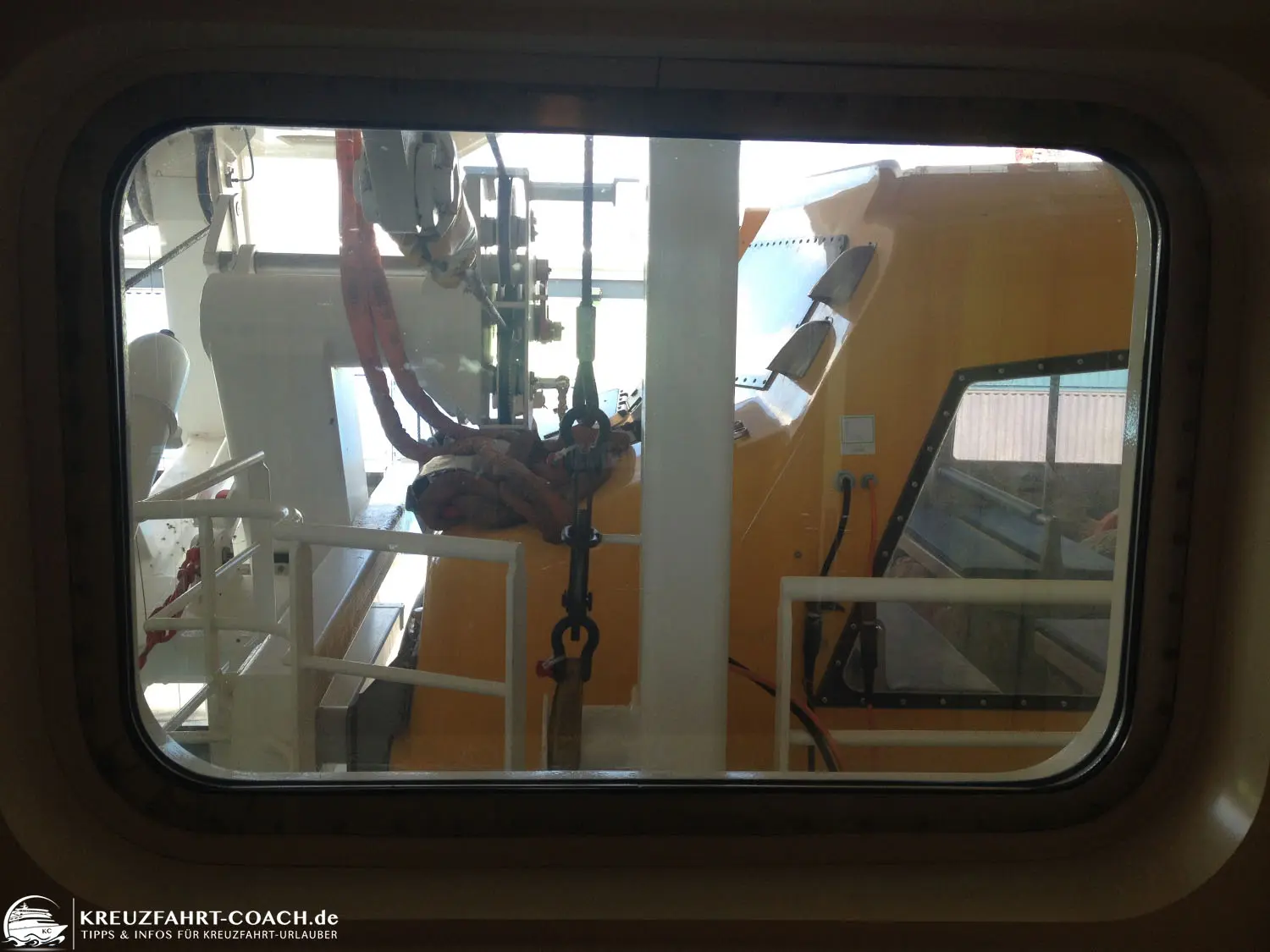 Eine Meerblickkabine mit eingeschränkter Sicht hat zwar ein Fenster (kann man nicht öffnen), allerdings ist das Blickfeld mehr oder weniger versperrt. In unserem Fall hatten wir eine der Kabinen, die sich hinter den Rettungsbooten befinden. Wie man auf den Bildern unten sehen kann, wird ein großer Teil des Sichtfeldes durch das Rettungsboot verdeckt.